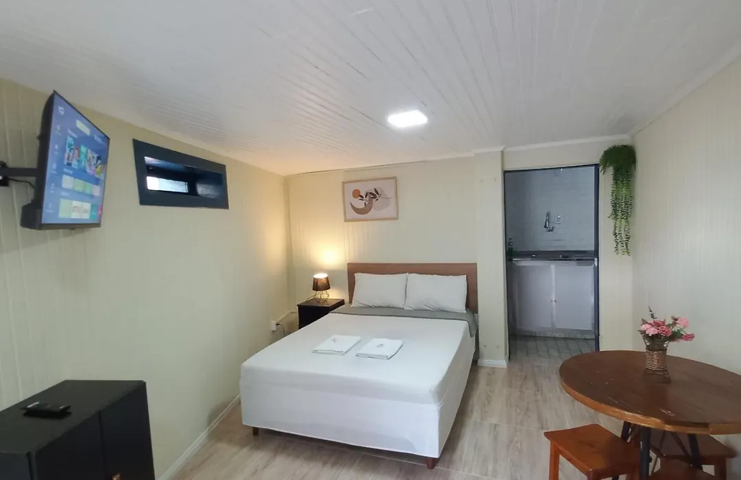 Eine Küchenzeile mit einem Wasserkocher und Küchenutensilien gehört zur Ausstattung dieses Apartments für Selbstversorger. Die Bushaltestelle Linha Sao Sebastiao befindet sich nicht weit entfernt von den 20 m² großen Suite Aconchegante Em Hospedaria No Centro entfernt.
